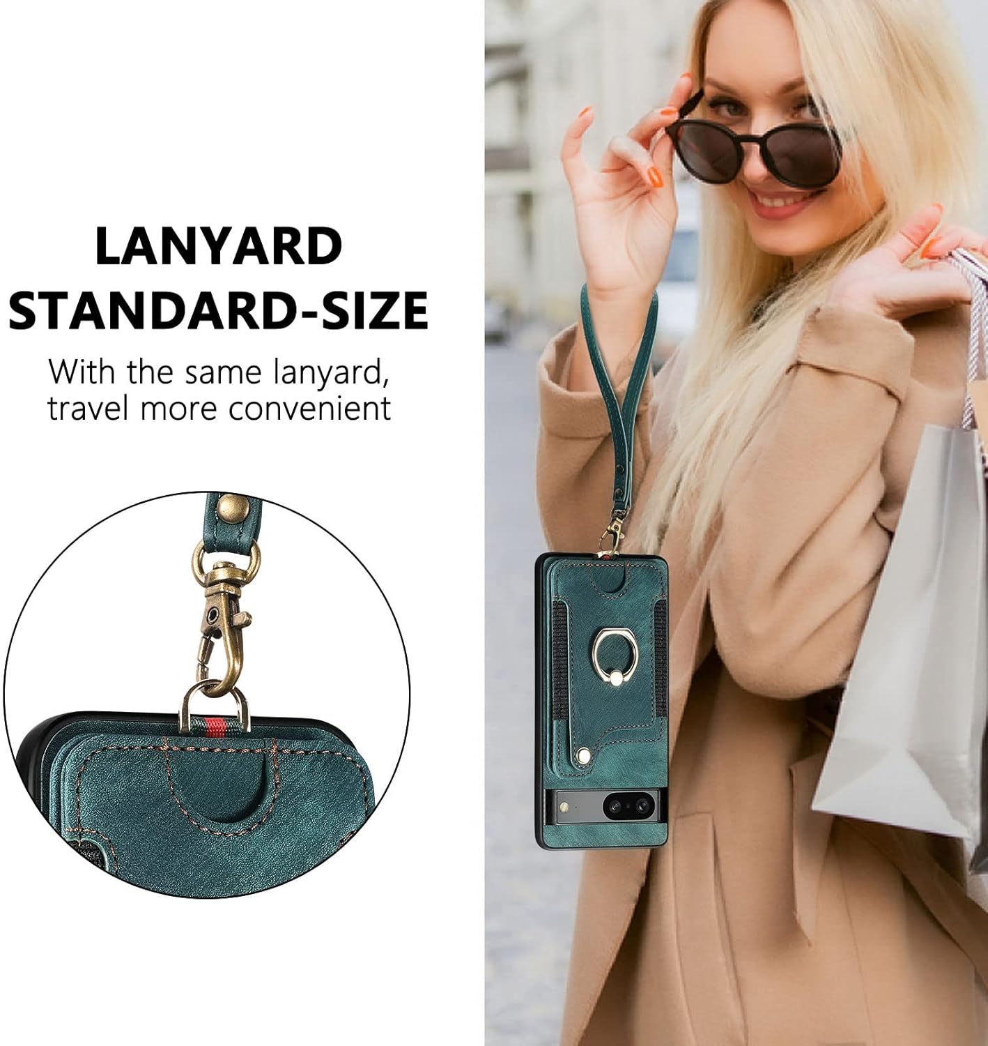 Asuwish Phone Case for Google Pixel 7 5G Wallet Cover with Tempered Glass Screen Protector and Wrist Strap Lanyard RFID Card Holder Ring Stand Cell Accessories Pixel7 Pixle Seven 6.3 Women Men Green
