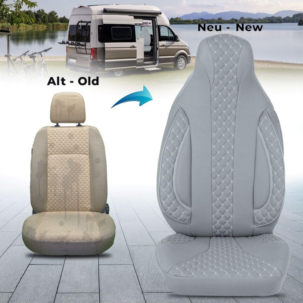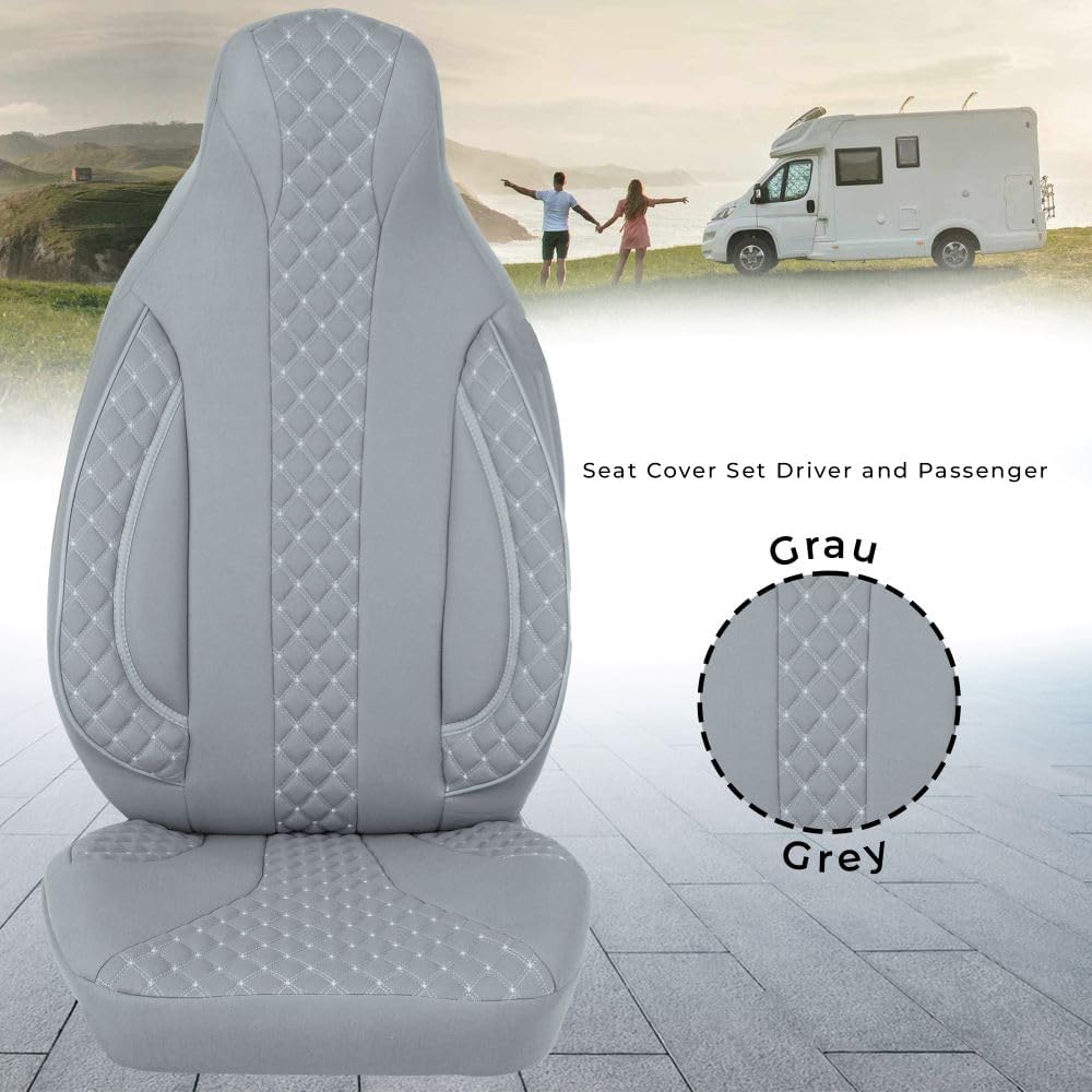 BREMER SITZBEZÜGE PL409 Pilot Seat Covers Compatible with Motorhome Camper Hymer Ducato Motorhome Accessories Set of 2 Including Armrest Covers in Grey