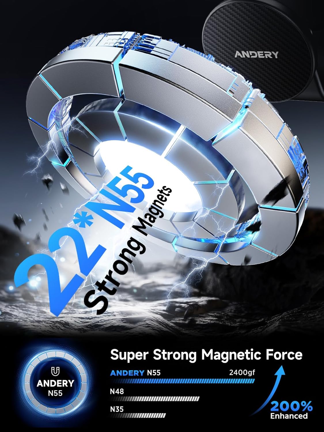 【2400gf Strong Magnetic Power, Stay Secure】Equipped with 24 N55 magnets, this magnetic phone holder delivers 200% stronger grip than typical mounts, keeping your phone securely in place. Tested through 5000 vibration cycles, it remains stable and firm, even on bumpy roads. The optimized magnetic layout helps maintain stable signal performance for clear navigation and hands-free calls.