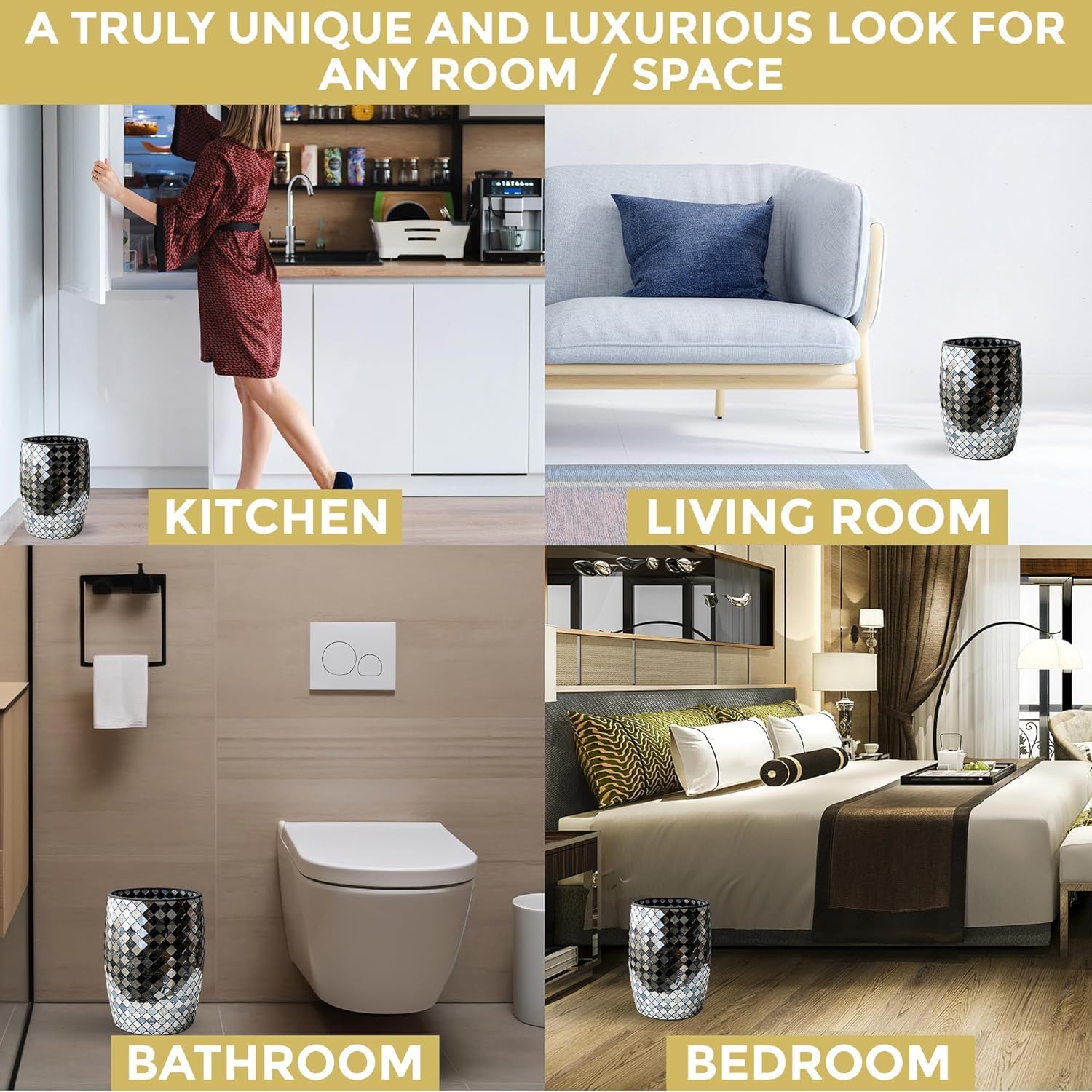 Versatile Mosaic Glass Decor – Add a touch of glamour to any room with this small Trash Can, enhancing the ambiance in bathrooms, bedrooms, offices, kitchens, living rooms, or any open area.