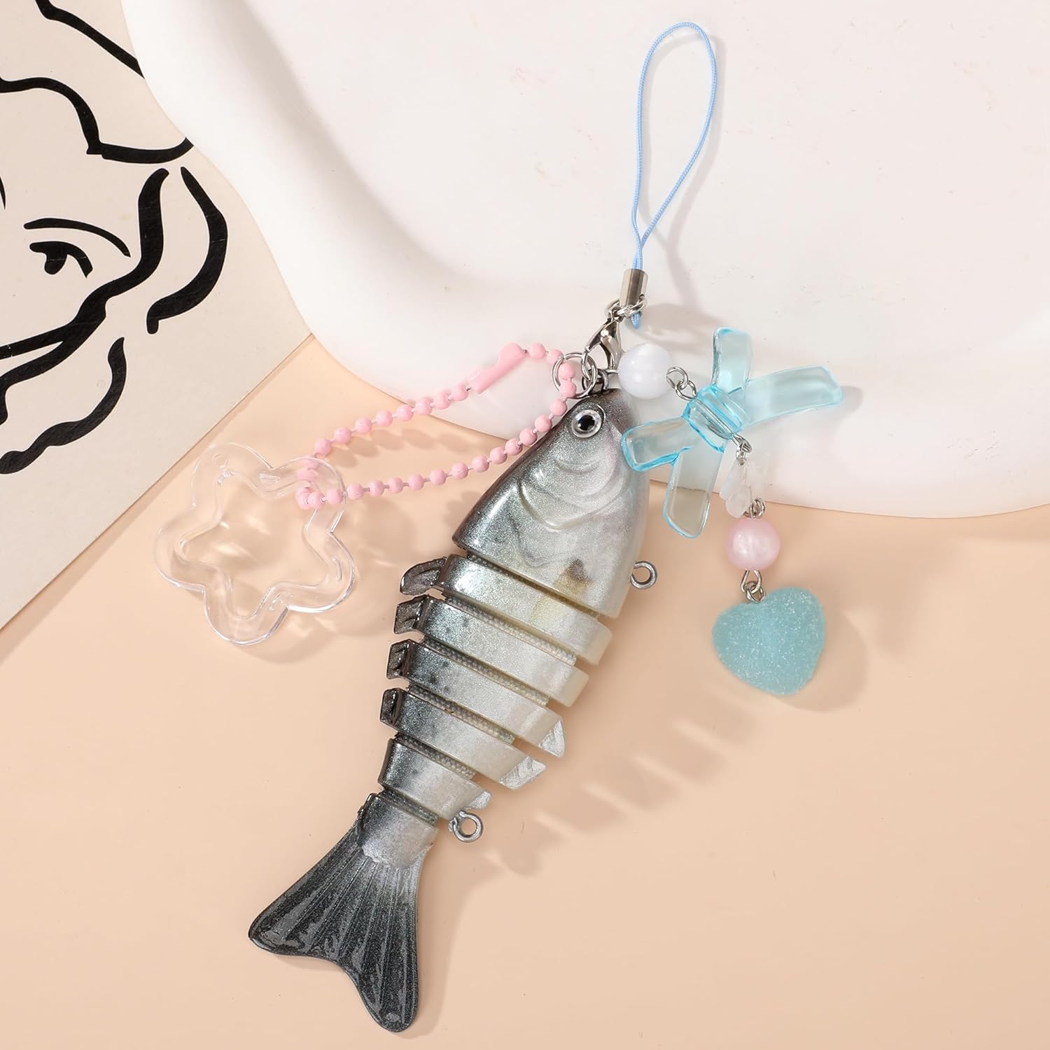 Fish Keychains Funny Fishing Keychains for Fisherman Cute Y2K Phone Charms Bag Charms Purse Accessories