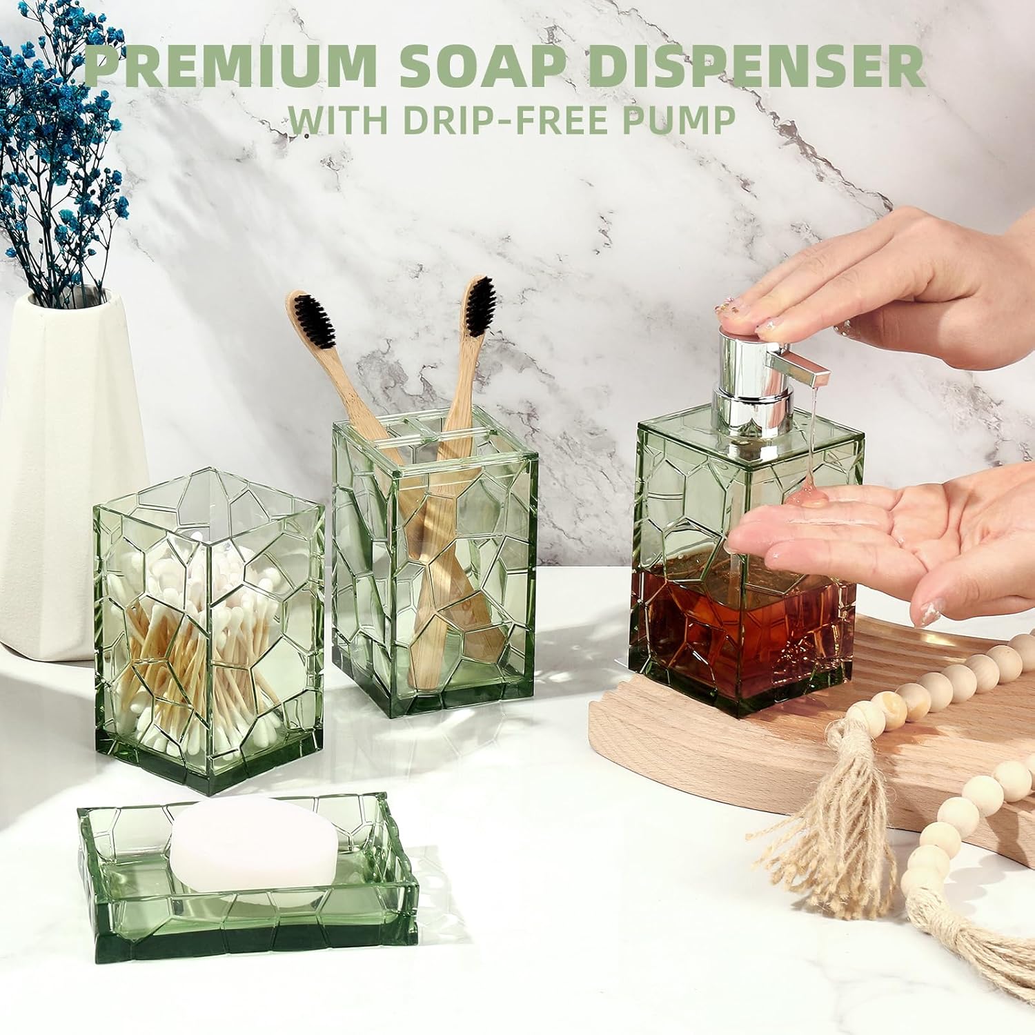 GAHEFY Green Bathroom Accessories Set with Toothbrush Holder, Soap Dispenser, Tumbler, Soap Dish, Sage Green Bathroom Decor, Acrylic (Green-4pcs)