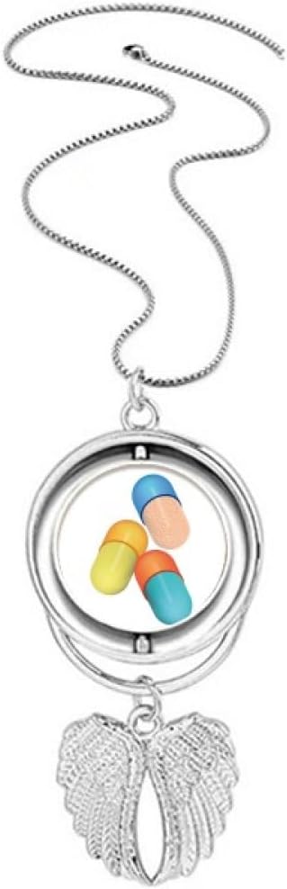 Health Care Products Capsule Pill Pattern Pendant Angel Wings Rotating Necklace Jewelry