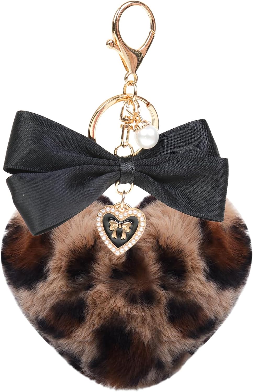 JK Home Pom Pom Leopard Fluffy Furry Keychains Black Bow with Storage Box, Soft Plush Love Heart Shape Keyholder Pendant for Charm Car Key Bag Phone Handbag Y2K Accessories Valentines Day