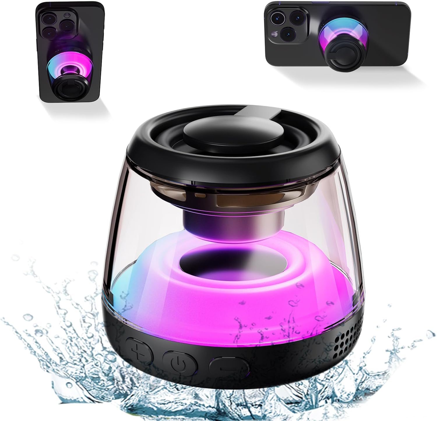 Magnetic Attachment & Wide Range of Uses: With a strong magnetic design, the small bluetooth speaker can be easily attached to the iphone16/15/14/13/12 series, and used as a phone holder at the same time, speaker and phone holder 2-in-1 design. The bluetooth speaker wireless can also be mounted on any metal surface, perfect for use on ovens, bicycles, etc. The small and portable size allows you to take the portable bluetooth speaker with you anywhere. Note: Please use the Mag-Safe case or the included “Metal Ring” for stronger magnetization.