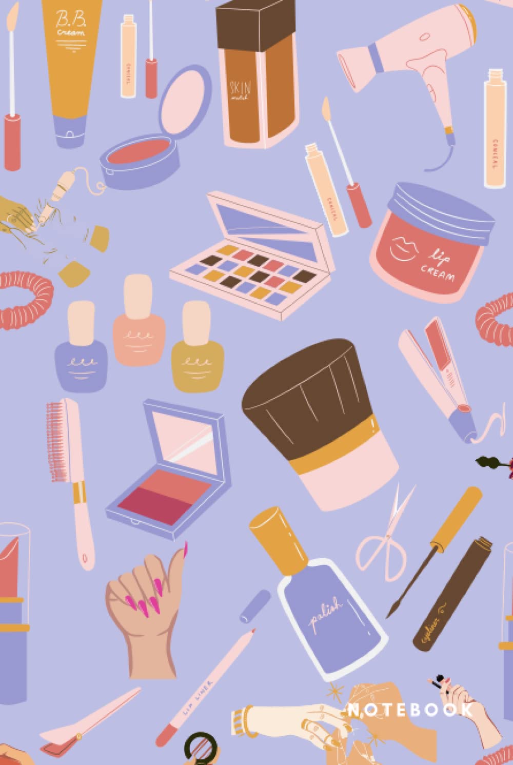 Notebook: Violet Notebook with Decorated with Drawings for Cosmetics Products for Beauty Secrets