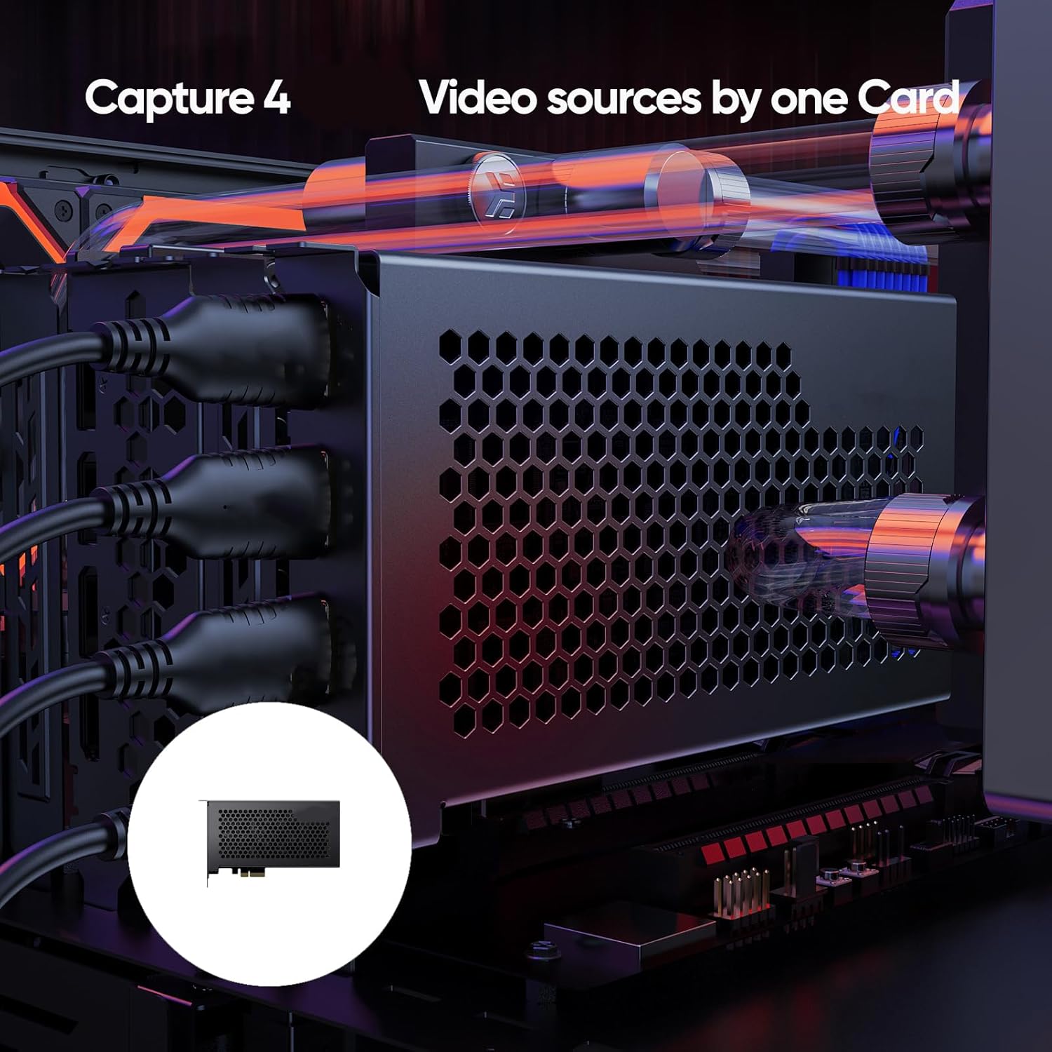 Capturing clear 4K footage simultaneously from four different cameras or sources with the ezcap335 PCIE video capturing card, offering unparalleled multi angled streaming and capabilities