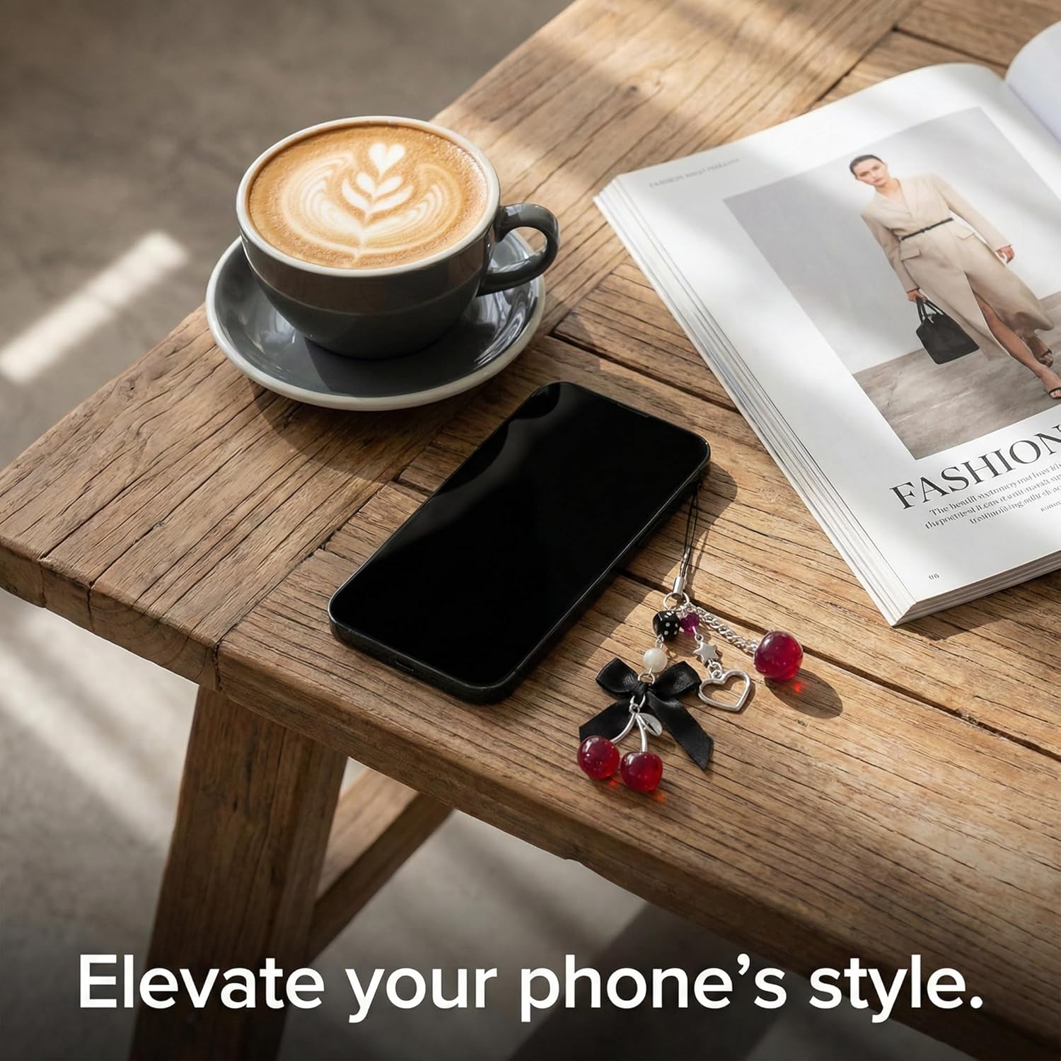 Phone Charms Strap Cute Cherry CellPhone Straps Aesthetic Pink Red Black BlueCherry Phone Chain for Camera Keychain Bag Pendant Decor Gift
