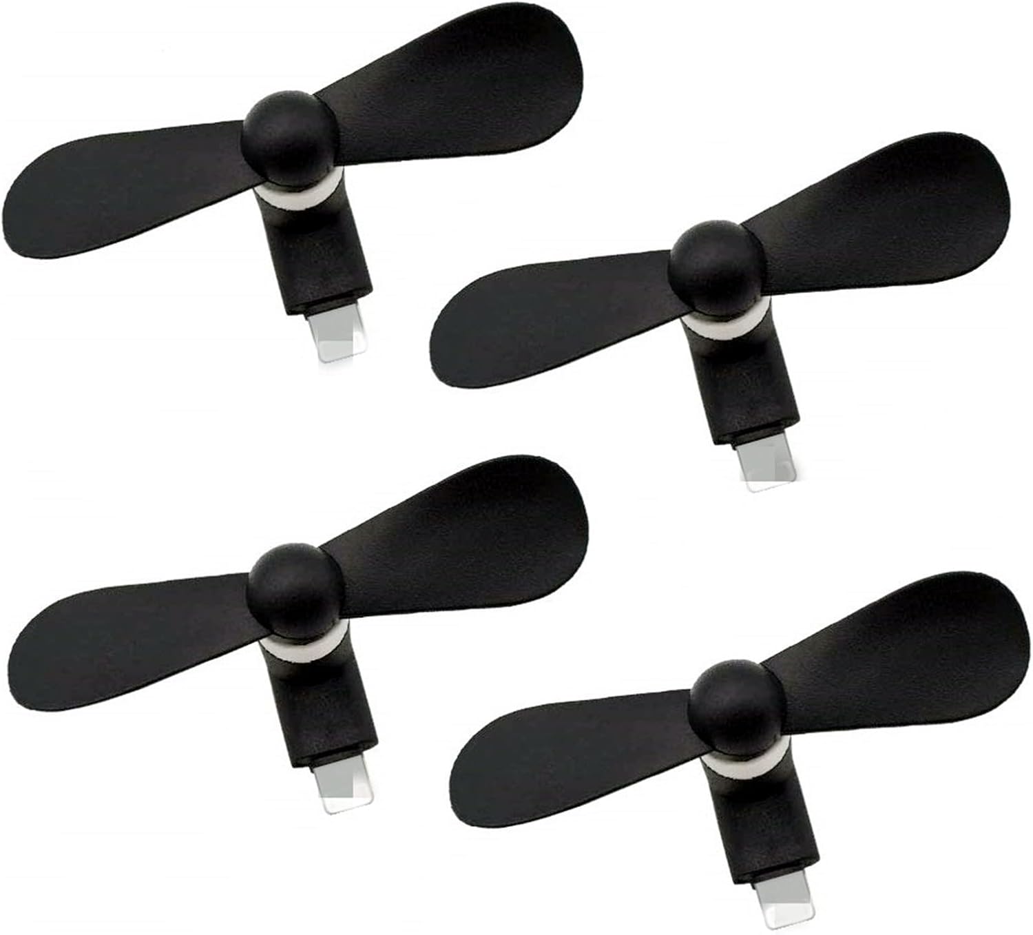 Phone Fan for iPhone 14/14 Plus/14 Pro Max/SE 3/13/13 Pro/12/11/XR/XS/iPad, 4 Pack Portable Mini Personal USB Pocket Fan Plug in Cellphones (Black)