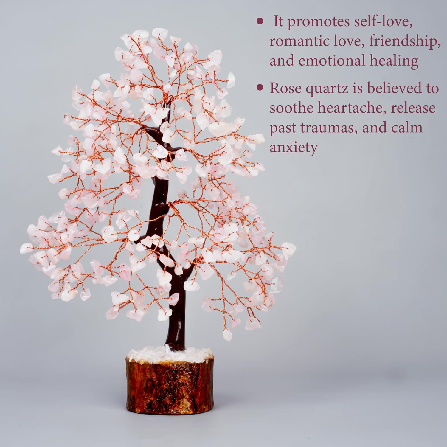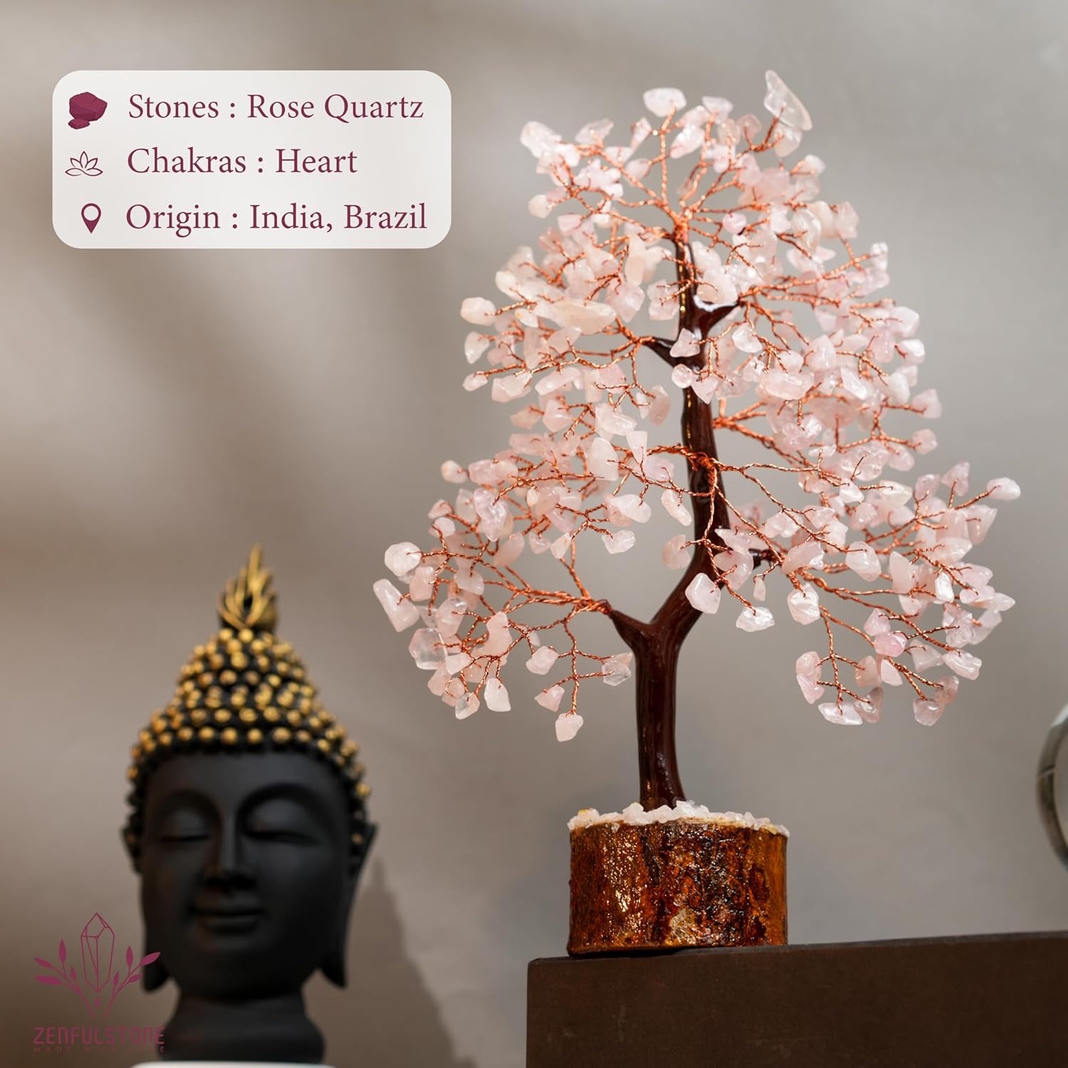 ZENFULSTONE Rose Quartz Crystal Tree of Life for Love & Healing Décor for Home and Office | Handmade Bonsai for Emotional Support & Harmony as Symbol of Piece for Loved ones